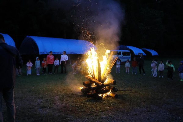 出発前は微妙な天気予報でしたが、子ども達の祈りが通じたのか雨もあがり、川遊びにながしそうめん、キャンプファイヤーとたくさんの経験をすることが出来ました