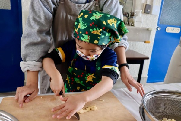 始めは補助が必要だった子も、何度か繰り返すうちに自分でカットできるようになっていました。